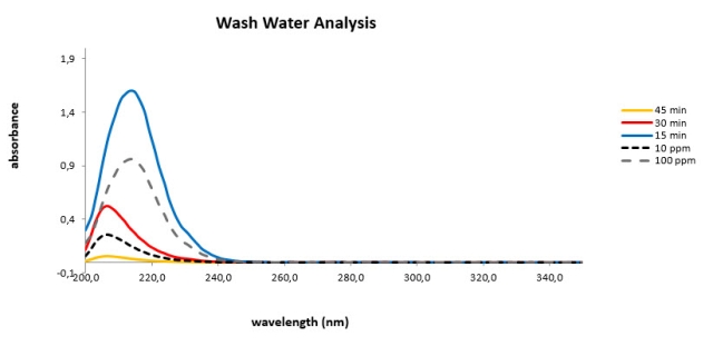 Washing Water Analysis with UV spectrometer allows to monitor the results of washing process during and after the cleaning.